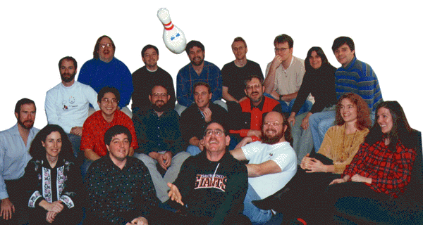 Back: Frank Yellin, Chuck McManis, Chris Warth, Herb Jellinek, Tim Lindholm, Arthur van Hoff, Michele Huff, Jonathan Payne. Center: Richard Tuck, Patrick Chan, Erik Gilbert, Eugene Kuerner, Mark Scott Johnson. Front: Lisa Friendly, Sami Shaio, Bob Weisblatt, James Gosling, Kim Polese, Kathy Walrath. Not Shown: Elizabeth Del Ben, Jim Graham, Ian Halifax, Mark Opperman, Steve Zellers.