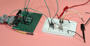 Basic Stamp II board next to it on the left. The Basic Stamp is used as a test pattern